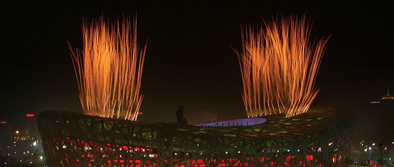 The canopy of Bird’s Nest Stadium cannot stand high temperature of any traditional fireworks products, and one single peck of sparkle can burn a hole on it. Apart from that, no residue or even smell was allowed for the Olympic display over the stadium, for the sheer importance of the event.